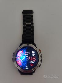 Vendo orologio smartwatch, funzionante, con batteria che dura un giorno se usato in modo attivo. Incluso un cinturino in gomma. L'orologio è provvisto di altoparlante per rispondere alle chiamate