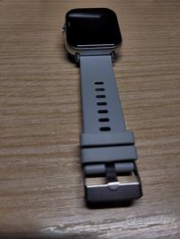 Vendo smartwatch dal design elegante e minimale, dotato di cinturino in silicone grigio e cassa in metallo con finiture curate. Il dispositivo è perfetto per chi desidera un orologio moderno con funzionalità smart: monitoraggio attività, notifiche, controllo musica e molto altro (compatibilità con Android e iOS).