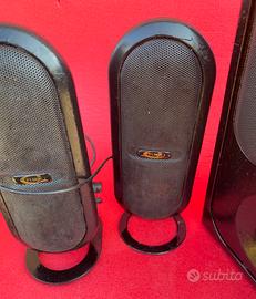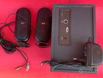 Casse subwoofer 60w della Logitech. Un po vecchiotte ma vanno benissimo. Piedino di una cassa non originale (vedi foto)