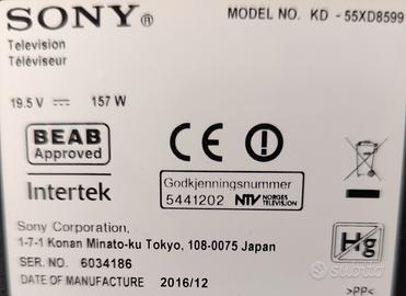 Vendo televisore Android Sony Bravia modello 55XD8599. Connessione wifi.