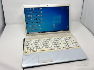 Notebook Sony VAIO PCG-71911M da 15,6", funzionante al 100%. CPU Intel Pentium B950 Dual-Core 2.50 GHz, 4 GB RAM DDR3 (espandibile), SSD 256 GB per avvio rapido. Display HD 1366×768. Wi-Fi, HDMI, VGA, USB, DVD, lettore SD. Windows 10 installato e aggiornato, formattato e pronto per nuovo utente. Alimentatore originale incluso. Ritiro in zona Formello (RM).