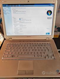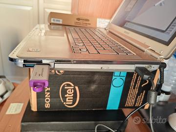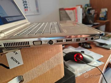 Bellissimo notebook Sony, datato ma perfettamente funzionante, esteticamente in ottime condizioni, display 14 pollici perfetto, hard disk 240GB stato solido (quindi non soggetto a rotture). La batteria non funziona, quindi va tenuto collegato alla corrente con il suo caricabatterie. Dotato di lettore DVD e di tutte le porte esistenti (USB3, VGA, PCMCIA, etc. vedi foto), ci potete collegare qualsiasi cosa. Completo di imballo e accessori originali, istruzioni e dischi di ripristino. Cedo anche il mouse con trackball Intellimouse della Microsoft e borsa Tucano per il trasporto. Non esitate a chiedere ulteriori informazioni e foto.