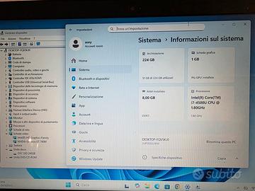 vendo bellissimo portatile Sony Vaio SVF1532U1EW, Intel core i7, 8gb ram, 256gb ssd, WiFi, bluetooth, HDMI, webcam, USB 3.0, lettore schede memoria, masterizzatore DVD, tastiera retroilluminata in origine Tedesca ma resa Italiana con stickers di qualità, Windows11 pro, batteria con buona autonomia, caricatore originale Sony.