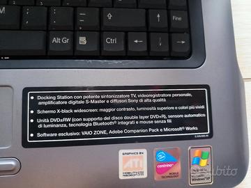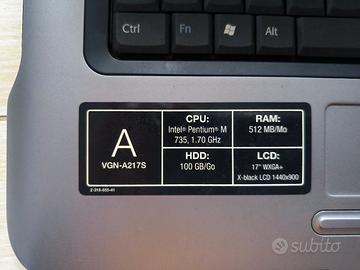Vendo Sony Vaio VGN-A217S danneggiato, per parti di ricambio.