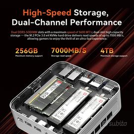Mini PC gaming SOYO S4 Plus, nuovo di zecca e appena testato, con potente processore AMD Ryzen 7 H255 e scheda grafica Radeon 780M, 16GB di RAM DDR5 5600MHz e SSD NVMe da 1TB + Wi-Fi 6 e Bluetooth 5.2. Windows 11 Pro installato e attivato, completo di scatola, alimentatore e accessori. Il prezzo per il set completo è di 400 EUR. Posso venderlo anche senza disco o RAM. Il prezzo per il barebone è di 220 EUR. Il PC dispone di 2 slot per RAM DDR5 SODIMM e 2 slot per SSD M.2. Solo ritiro a Bologna. Posso dimostrare che non presenta alcun problema. Dai un'occhiata agli altri miei annunci.