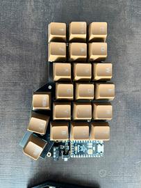 Vendo Tastiera ergonomica Split Corne. La tastiera e in uso da circa un mese. Leg rgb per ogni tasto e switch meccanici. Microprocessori Liatris che supportano anche un mini schermo oled sopra da comprare a parte. Le due meta devono essere collegate attraverso un cavo TRRS in dotazione e tramite cavo usb c sulla meta di sinistra. Molto ergonomica e dopo l’ambientamento relativamente veloce si diventa molto piu produttivi. Vendo per passaggio a tastiera superiore.