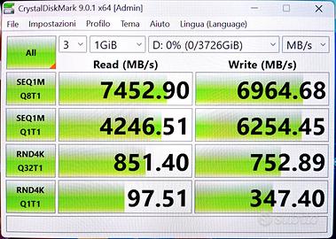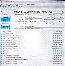 SSD Samsung 990 Pro M.2 NVMe da 4 TB in ottime condizioni. È stato utilizzato solo per dei test. Praticamente nuovo. Le schermate dei test e altri dettagli sono nelle foto di questo annuncio. Disponibile per ritiro di persona o spedizione tramite TuttoSubito. - SSD Samsung 990 Pro M.2 4TB NVMe PCIe 4.0 x4 velocità 7450 mb/s Cache DRAM Compatibile con PlayStation 5