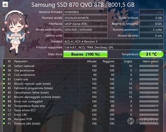 Nuovo. Samsung 870 QVO "MZ-77Q8T0" SSD interno/esterno da 8TB/8000GB, interfaccia SATA 6 Gb/s, formato da 2.5” pollici, compatibile internamente/esternamente con PS4™, esternamente con PS5™ (memoria di archiviazione estesa USB 3.2) o PC con Microsoft Windows 7 Ultimate, 8, 8.1, 10 Pro e 11 Enterprise/MacOS/Linux, velocità di scrittura ultraveloce (SSD) da 530MB/s, lettura 560MB/s, V-NAND SSD.