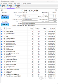 Vendo SSD da 2TB formato SATA, praticamente nuovo (utilizzato pochissimo – circa 30 ore di utilizzo). Testato con software diagnostici (CrystalDiskInfo) Stato SMART 100% (nessun errore rilevato) Capacità reale 1.86TB Il disco è stato verificato ed è perfettamente leggibile.