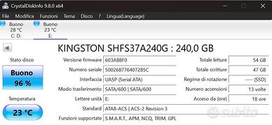 Vendesi LOTTO HARD DISK 2.5" (formato notebook), interfaccia SATA. Vendesi singolarmente o ad intero lotto. Taglie da 1TB - 500GB - 320GB - 240GB - 120GB ✔️ Testati e funzionanti ✔️ Nessun rumore anomalo ✔️ Ideali per notebook, PS4, storage o backup Disponibili i seguenti pezzi per ogni taglia. *SSD* Nr.1 pezzo da 500 GB - 25€ cad. - VENDUTO Nr.4 pezzi da 240 GB - 20€ cad. - (Rimanenti 2) Nr. 10 pezzi da 120 GB - 8€ cad. (Rimanenti 6) *HDD* nr. 10 pezzi da 1TB - Prezzo: 25€ cad. nr. 34 pezzi da 500 GB - Prezzo: 15€ cad. nr. 9 pezzi da 250 GB - Prezzo 10€ cad. nr. 12 pezzi da 320 GB - Prezzo 8€ cad. nr. 12 pezzi da 120 GB - Prezzo 5€ cad. Perfetti per: tecnici informatici rigenerazione PC uso laboratorio 💰Vendo intero lotto a 500€ 📍 Possibile ritiro a mano o spedizione solo per intero lotto. Contattami per info o per acquisto multiplo.