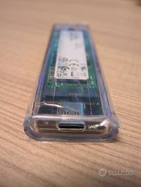 SSD Esterno Portatile, basato su elettronica di qualità Samsung con capacità di 256GB e collegamento USB 3. Velocissimo sia in lettura che in scrittura, è ideale per il backup dei dati del computer o dello smartphone. A scelta, viene fornito con cavo USB-A - USB-C (per computer), oppure con cavo USB-C - USB-C (per smartphone/tablet Android).
