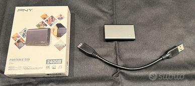 SSD Esterno 240 GB molto piccolo, collegamento USB 3.1 o inferiori, nuovo, ancora imballato. Ottimo per salvataggio dati, molto più affidabile di una penna USB.