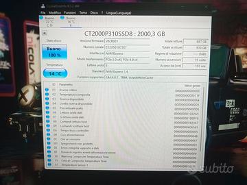 Modello : Crucial P 310 Heatsink Capacità : 2 TB Velocità 7.100 MB/s NVMe 2280 PCIe Gen4 Acquistato su Amazon Quindi con garanzia Trattabile