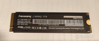 Ssd Fanxiang S690Q da 2Tb ( verificato sono 1,8 Tb effettivi). PCIe 4.0 5200Mb/s lettura 4700 Mb/s scrittura Non faccio sconto, non spedisco tramite tutto subito ma privatamente sì, chiedendo 5€ in più fino a 20 km di distanza da Casalpusterlengo.