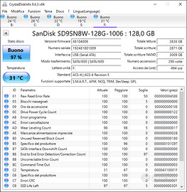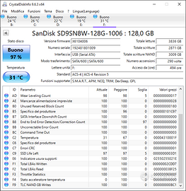 SSD (Solid State Drive) SanDisk SATA da 128 GB in formato M.2. Questo tipo di unità di archiviazione è comunemente utilizzato nei computer portatili e in alcuni desktop come memoria principale per il sistema operativo e le applicazioni, offrendo velocità di lettura e scrittura superiori rispetto ai tradizionali hard disk meccanici. Caratteristiche principali: Marca: SanDisk. Tipo: SSD (Solid State Drive). Interfaccia: SATA. Capacità: 128 GB. Formato: M.2 2280. Utilizzo: Memoria principale per computer portatili e desktop.