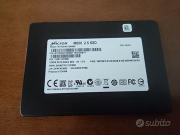 SSD Micron M600 128GB, Mod: MTFDDAK128MBF, SATA III (6 Gb/s), formato 2.5 pollici (7mm). Molto veloce e super affidabile, in perfette condizioni funzionante + adattatore "case box" per essere usato anche esternamente tramite USB 3.0