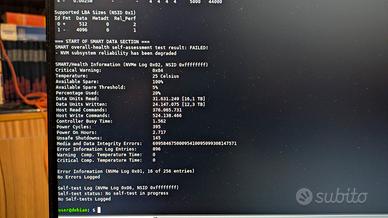 Nonostante il disco permetta il caricamento del sistema operativo, i parametri SMART indicano un'affidabilità compromessa. Viene venduto come difettoso, ideale per recupero componenti, test di laboratorio/didattica o utilizzo in sistemi secondari non critici (a rischio dell'utente).