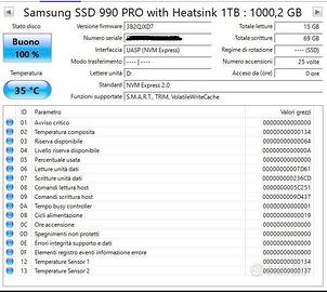 vendo come da titolo SSD nvme Samsung 990 pro da 1 tb nuovo, allego specifiche Crystal disk info totale dati scritti 69 GB acceso 25 volte. disponibile spedizione pagamento tutto subito PREZZO NON TRATTABILE visto il periodo
