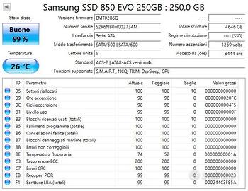 In Ottime condizioni .. 99% del ciclo vita con queste caratteristiche .. Produttore : Samsung Modello : 850 EVO Capacità SSD : 250 GB Fattore di forma : 2,5" Interfaccia : SATA 6 Gbit/s Velocità di lettura sequenziale: fino a 540 MB/s Velocità di scrittura sequenziale : fino a 520 MB/s Lettura casuale : fino a 97000 IOPS Scrittura casuale : fino a 88000 IOPS Resistenza (TBW) : 75 TB Spedizione Veloce con Poste Italiane