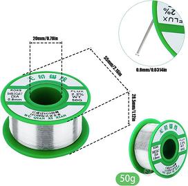 Rocchetti di filo 0,8mm (50g) per saldatura, con nucleo di colofonia.