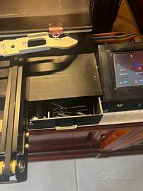 Per passaggio a stampante piu grande vendo stampante 3d Ender 3 completamente migliorata con: scheda madre makerbase con driver silenziosissimi, display touch screen, cassetto estraibile per riporre attrezzi, contenitore scheda madre riprogettato e ristampato, porta bobbina, estrusore diretto ottimo anche per tpu, piatto in vetro microforato, streep led di illuminazione, La stampante si connette alla rete wifi ed e possibile controllarla anche dal pc per esempio tramite il software Cura o altri, realizza stampe anche a velocita sostenute grazie ai driver e alla scheda madre di nuova generazione, In piu ho tantissimi componenti ed accessori alcuni mai utilizzati che do via insieme alla stampante come: sensori per auto livellamento, piatto originale in resina, qualche ugello, sensori di temperatura di ricambio, tutti i pezzi originali rimossi ecc. La stampante e perfettamente funzionante in ogni suo componente. Le stampe sono perfette. Se vi occorrono vi do anche i profili di stampa. Attenzione la stampante è una ender3 ma praticamente e qualitativamente tantissimio superiore, alla ender3 originale. Spedizione con corriere espresso.