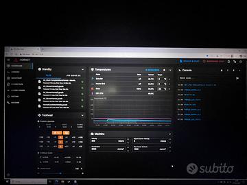 La stampante è una Anycubic Kobra con elettronica superiore Manta M4P WIFI CPU CB1 Driver motori TMC2209 con sensorless Pannello klipper per gestire i led TFT35 touch Estrusore 24V Piatto riscaldato 24V Piastra in PEI flessibile magnetica Led testa di stampa e telaio Contattate per più info