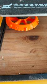 La stampante viene fornita con migliorie aggiunte successivamente come il nuovo piano di stampa magnetico che si può staccare a fine stampa per un più facile distacco dell’oggetto stampato, il sensore di fine filo in modo che la stampante si sospende da sola in attesa che venga caricata la nuova bobina per continuare la stampa (vedi foto) e le rotelle per il livellamento del piatto.