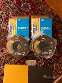- Filamenti ufficiali Ender PLA+ 1 kg (Grigio, nuovo; Bianco e Nero, circa 10 metri usati ciascuno)