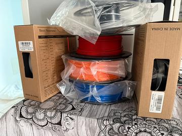 Stampante 3D Creality Ender 3 V2 con filamenti di vari colori, tutto funzionante