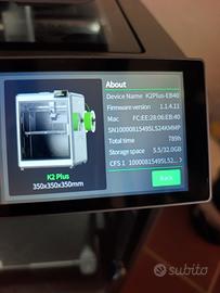 Stampante 3D Creality K2 Plus Combo – Come Nuova (700h) Vendo per passaggio a sistema superiore/diverso, splendida Creality K2 Plus. La macchina è stata tenuta in condizioni maniacali, perfetta per chi cerca prestazioni elevate, velocità e volumi di stampa generosi senza i compromessi dell'usato "vissuto". Caratteristiche Principali: Ore di lavoro: circa 800 ore totali (macchina appena "rodata", usata per progetti hobbistici). Stato: Eccellente, manutenzione regolare e calibrazioni eseguite costantemente. Packaging: Inclusa la sua scatola originale con tutti gli imballi interni, ideale per un trasporto sicuro. Accessori: Corredo originale incluso (manualistica, cavo di alimentazione, set di strumenti). CFS incluso.