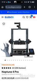 Vendo stampante 3D Elegoo Neptune 4 Pro per poco utilizzo. Ottime condizioni, circa 150 ore di stampa tenuta perfettamente, aggiornata e giá pulita e lubrificata. È la stampante perfetta per cominciare, semplice da usare e calibrare, ottima precisione di stampa e non ha mai avuto neanche un problema Insieme alla stampante vendo enclosure Creality, non è perfetta per la stampante perchè non è della stessa marca, ma fa il suo lavoro: mantenimento temperatura e umiditá interna e aumento della qualitá di stampa (non è obbligatorio prendere entrambi, contattatemi in chat per info) non ho la scatola originale, ma vendo con tutti gli accessori che erano presenti preferibile la consegna di persona per questioni di comoditá, ma comunque sono disposto a spedire a spese dell'acquirente. il costo di spedizione è puramente indicativo.
