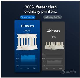 Pressione ad alta velocità di 200 mm/s e accelerazione 2800 + mm/s²; dotato di motore passo-passo ad alte prestazioni da 3 x 48 W supporta una normale velocità di stampa della stampante 3D Flsun Super Racer (SR) fino a 200 mm/s e 2800 + mm/s², godetevi una stampa istantanea ad alta velocità sotto Stessa forma mantiene la stessa forma Qualità di precisione, 200% più veloce dello standard di industria, consente di risparmiare più della metà del tempo di stampa.