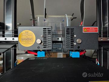 Vendo per passaggio ad altro sistema,stampante 3D JGMaker Artist D Pro. Due testine di stampa indipendenti per stampare oggetti bicolore, bimateriale (es. PLA + supporti in PVA) o di lavorare in modalità "Specchio" e "Duplicazione" (stampa due oggetti uguali nello stesso momento). Caratteristiche Principali: Ampio volume di stampa 300×300×340 mm Auto-Bed Leveling: Sensore di livellamento automatico integrato per una calibrazione del piano perfetta. Alimentatore Meanwell. Modifica Silent: L'alimentatore è stato spostato esternamente/ottimizzato e dotata di una ventola ultra-silenziosa. La macchina è ora molto più silenziosa rispetto al modello di fabbrica. Se volete posso riportare la macchina allo stato originale. Cosa è incluso: Stampante JGMaker Artist D Pro completa. Cavi di alimentazione e accessori originali. 4 Tappetini adesivi originali nuovi! 1 Supporto esterno per bobina filo. Vista la dimensione preferisco consegna a mano.