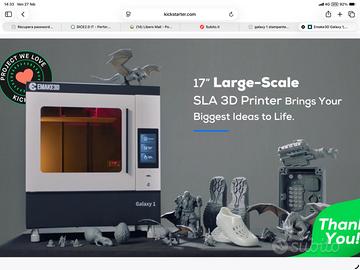 Vendo stampante 3D a resina Galaxy 1 della E-make 3D . (Per smanettoni !!) La stampante ha lavorato solo 7 mesi .. (praticamente è nuova) ..poi durante la sostituzione di una schedina per un mio errore c’è stato un corto circuito che forse ha danneggiato la scheda madre e forse anche il laser . La stampante a comprarla nuova tra trasporto , dazi, iva costa più’ di 3000 euro . Per il trasporto ci accordiamo telefonicamente ..