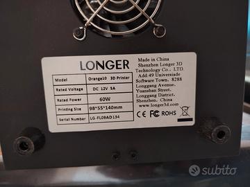LONGER Orange 10,Stampante 3D, Resina Stampante 3D SLA con Illuminazione a LED Parallela, 98mm x 55mm x 140mm Dimensioni di Stampa, Avviso di Temperatura. La stampante funziona perfettamente, è corredata di micro sd, contenente il manuale, il software di funzionamento ed alcuni files di prova. Fornisco imballo originale.
