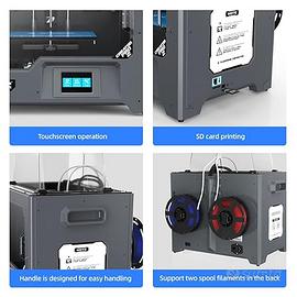 Vendo flashforge Creator Pro 2, a camera chiusa, doppio ugello di estrusione di 0,4 mm con possibilità di stampare multicolore massima temperatura del ugello 240 gradi e del piatto di stampa 120 gradi, dimensioni del piatto 200x148 mm, perfetta per poter iniziare a stampare.