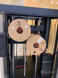 Gli ugelli, ma in generale i due hotend sono stati completamente ripuliti dopo l’ultimo utilizzo. Al piatto di stampa ampio è stato sostituito di recente l’adesivo, che presenta però qualche “bolla”, ma il piatto vero e proprio è in perfette condizioni. E’ stata sostituita la scheda elettronica degli estrusori che risulta quindi essere nuova, perfettamente funzionante.