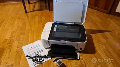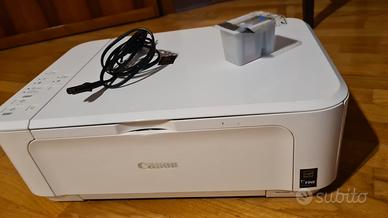 Stampante, fax, scanner Canon MG3550. Ok per fax o scanner, mentre come stampante richiede di fare allineamento testine. Completa di cartuccia nero nuova e cavo alimentazione.
