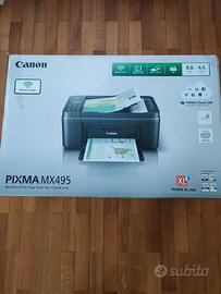 stampante canon pixma mx495,funziona con wifi, fa copie, scanner e fax sia in buancone nero che a colori funzionante