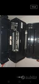 stampante a colori e in bianco e nero, sia per stampe normali che per foto. si può regolare il formato della carta da stampa (come si vede in foto). presenta cavo alimentazione. no WiFi, collegamento USB.