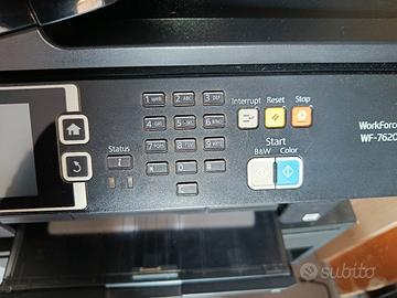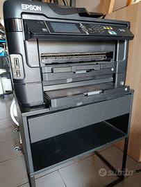 Stampante multifunzione formato A3 modello Epson WF-7620 con cartucce ancora funzionanti, funzione fotocopiatrice con alimentazione automatica, vengo compreso mobiletto con cassetto.
