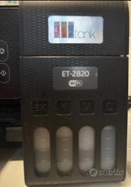 Stampante multifunzione A4 Epson EcoTank ET-2820 (Fuori produzione) in colore nero, dotata di connettività Wi-Fi, fa un po’ fatica a volte a connettersi, ha una leggera rottura sullo sportellino ma è del tutto funzionante