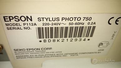 Si vende stampante Epson Stylus Photo 750 (modello P112A), a getto di inchiostro, unitamente a manuale d'uso (CD) e CD per installazione driver stampante, anche per pezzi di ricambio. Misure: 24 cm profondita'; 15 cm altezza; 42 cm larghezza.