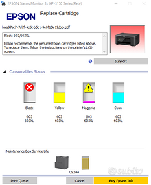 Dentro alla stampante vi è Cartuccia 'Giallo' e 'Ciano', metà piene. Consultate lo screenshot in annuncio per verificare il livello di inchiostro delle due cartucce sopracitate.