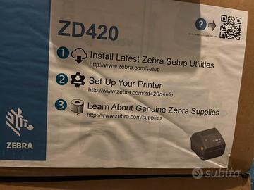 Stampante/etichettatrice marca Zebra modello ZD 420 d. La stampante ha in dotazione tutti gli accessori (cavo alimentazione, gancio porta ribbon ecc), è nuova e non è mai stata utilizzata, ancora nella scatola di acquisto.