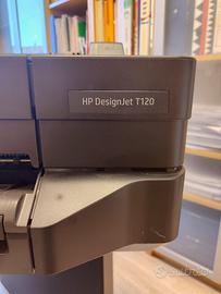 Stampante HP designjet T120 grandi formati, colori e bianco e nero, funzionante ma è necessaria revisione testine e/o pulizia e sostituzione cartucce originali.
