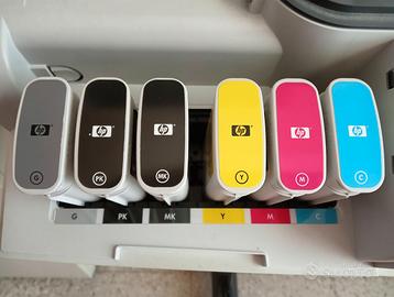Stampante professionale del 2009 completo del Kit HP Start-Up in DVD, testina e supporta n.6 cartucce, carrello con ruote per conservazione carta e per lo spostamento plotter