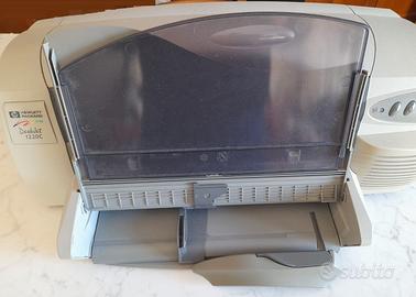 Stampante professionale a colori HP Deskjet 1220c per stampe dal biglietto da visita fino al Formato A3. Risoluzione di stampa di 2400 x 1200 dpi. Stampa a getto di inchiostro sia monocromatica che a colori. Le cartucce sono da sostituire in quanto esaurite. Perfettamente funzionante e completa di cavo di alimentazione e collegamento USB. Il manuale è disponibile in formato “pdf”. La stampante collegata a Windows viene riconosciuta con i driver interni del sistema operativo. Non disponibile per la spedizione.