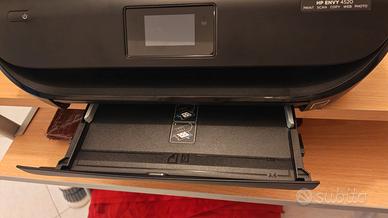 Stampante HP Envy 4520 multifunzione in buone condizioni, con cassetto sottostante portafogli.