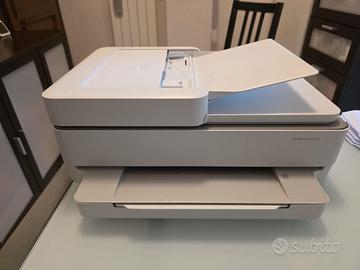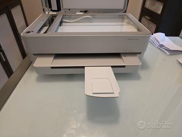 Stampante multifunzione a getto di inchiostro in perfette condizioni, con cartucce nuove appena comprate. Stampa fronte/retro automatica, scansiona sia sul ripiano di vetro che sull'alimentatore automatico (ADF) con capacità di 35 fogli A4. Caratteristiche principali: Funzioni: Stampa, copia, scansione, Wi-Fi, fronte/retro automatico, ADF (Alimentatore Automatico Documenti). Velocità di Stampa: Fino a 10 ppm (pagine al minuto) in bianco e nero e 7 ppm a colori. Qualità di Stampa: Risoluzione fino a 4800 x 1200 dpi a colori. Connettività: Wi-Fi 802.11ac (dual band), Bluetooth 5.0, USB 2.0, compatibile con HP Smart App, Apple AirPrint e Mopria. Gestione Carta: Cassetto di alimentazione da 100 fogli; Stampa senza bordi. Cartucce Compatibili: Utilizza cartucce HP 305 / 305XL (nero e tricromia). Design: Colore grigio/bianco, design compatto. Servizi: Supporta HP Instant Ink